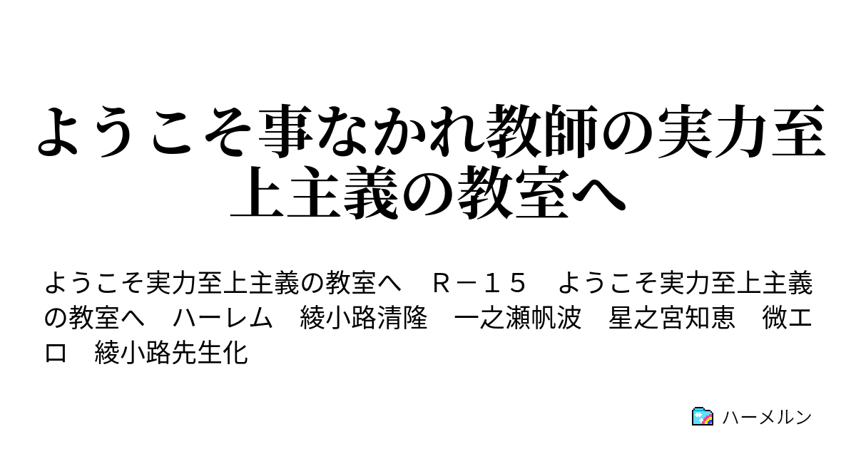 ようこそ事なかれ教師の実力至上主義の教室へ ハーメルン